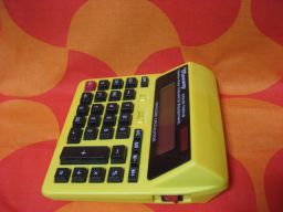 大きくて存在感たっぷりの形状とレトロなイエロー、そしてボタンも大きくて使いやすい。電源スイッチはONで電池OFFにすると太陽電池が作動します。液晶部分も12桁表示で文字も大きめでとっても見やすいです。